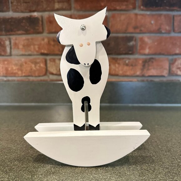 Adorable rocking Holstein rocking cow will entertain you with her swinging head and tail. Cleverly designed, hand made and painted, this is too fun to pass up!