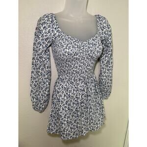 Holster White & Blue Floral Romper with Sweetheart Neckline, Size XS