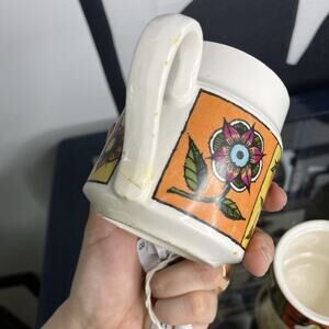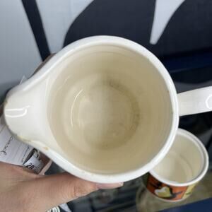 The creamer pitcher has a chip on the inside spout. The sugar dishes (I think that's what they are) do not have lids. Some cosmetic blemishing on the pieces, see photos. Sold as-is.
