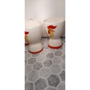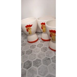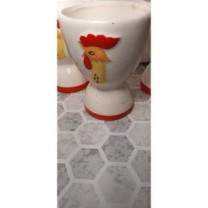 Holt Howard Set of 4 Whimsical Egg Cups, Coq Rouge Rooster Design 1961