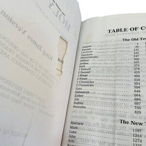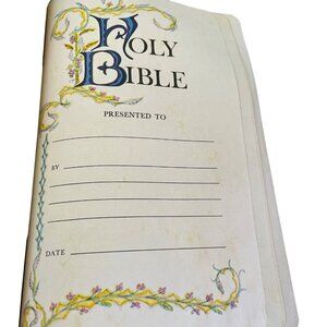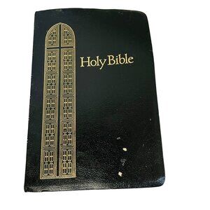 Minor scuffs on the cover, adding to its vintage character. a couple of pages have yellow marker through verses. Bible has not been read much. Inside very clean.no torn pages