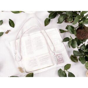This stunning Holy Bible Lord’s Prayer necklace is crafted from durable stainless steel, ensuring long-lasting beauty and wearability. The pendant resembles a miniature Holy Bible with "Holy Bible" engraved on the cover. It opens to reveal the complete Lord’s Prayer elegantly etched on both sides, making it a meaningful and timeless keepsake.