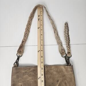 Holy Cow Couture Distressed Grey Tan Leather Feed Bucket Bag Shoulder Purse