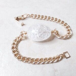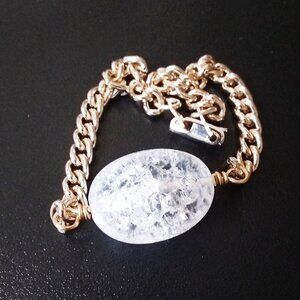 Holy Cow! Huge!!! Crackle Glass Focal Bead w. Gold Plated Chain! Sexy & Trendy