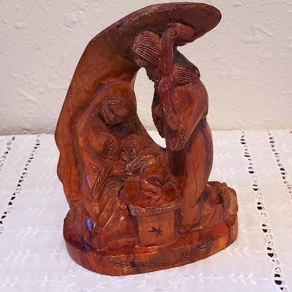 Hand Made Holy Family In Flight Made in Nazareth Using Olive Wood