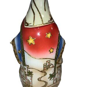 This ceramic nativity figurine features intricate hand-painted details, gold accents, and vibrant colors, making it a timeless addition to seasonal decor.