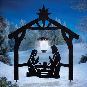 Holy Family Nativity Shadow Garden Stakes with Solar Lantern Nativity Scene