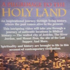 A Pilgrimage To The Holy Land VHS: Is an inspirational journey through living history, where the pastimes alive in the present. This intriguing video will take you through a journey of authentic locations in Biblical history ---- The walled city of Jericho, The River Jordan, and Mount Zion, the site of the Last Supper, and much more.
