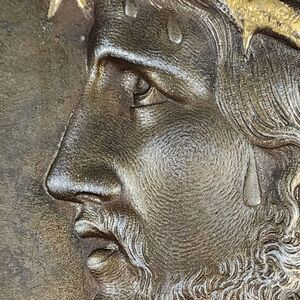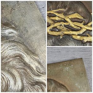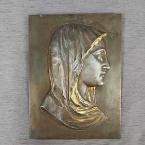 Holy Mother Mary and Jesus Bronze Plaque Set French Catholic Religious Wall Icon
