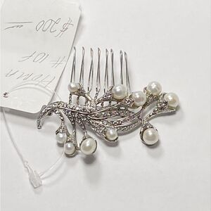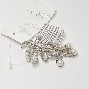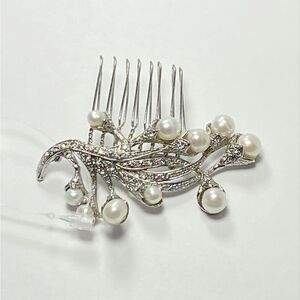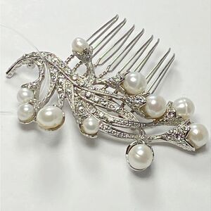 Homa Bridal Crystal and Pearl Silver Bridal Hair Comb Headpiece Hair Jewelry
