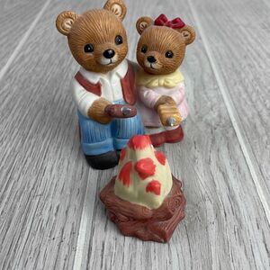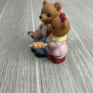 Homco #1446 Campfire Bear Couple Figurine Set of 2 Marshmallows & Hotdogs