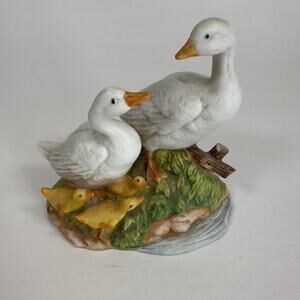 Homco #1459 Porcelain Figurine w/Sticker Duck/Ducklings/Geese Family Vintage