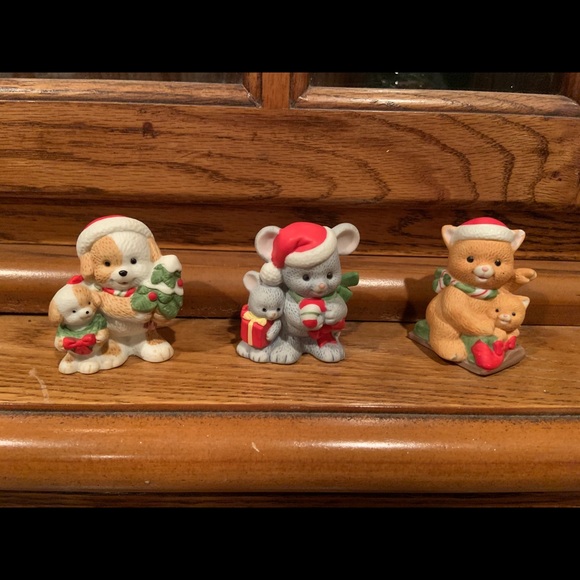 Set of 3 - cat, dog and mouse. Homco ceramic Christmas Figurine