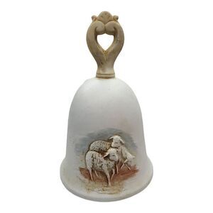 Vintage porcelain bell by Homco. Features a raised nativity scene on the front in three sheep on the back. The bill is an excellent condition with no cracks chips or repairs. It is from a smoke-free home. The bell measures six inches tall.