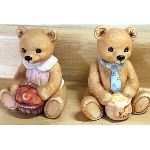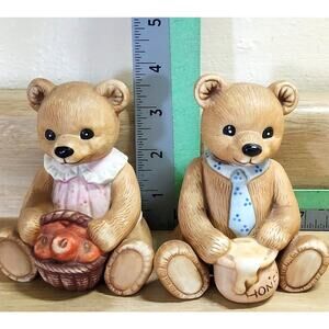 Homco Ceramic Bears #1405 Honeypot & Apples Girl & Boy Set See Pictures