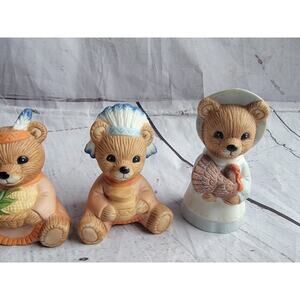 Homco Figurines Autumn Harvest Thanksgiving Bears Set #5312 READ