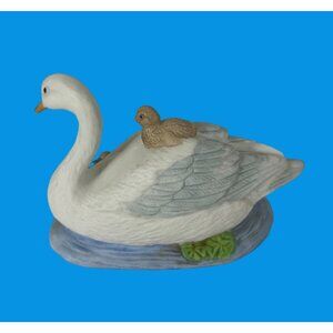 Homco Home Interiors Swimming Swan With Cygnet #1467 Porcelain Figurine