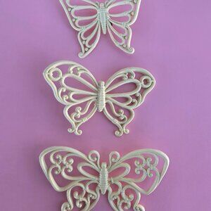 Homco Home Interiors Vintage White/Off White Butterfly Wall Plaques Set Of 3 Y2K