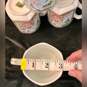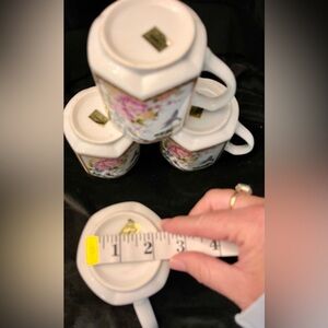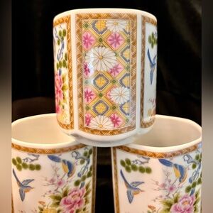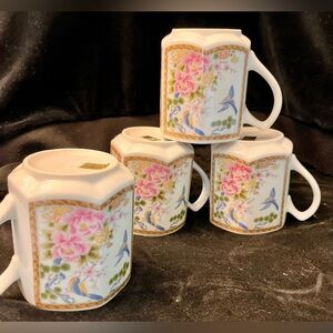 Homco Japan 4 Mugs Cups Hexagon Gilded Peonies Bluebirds Bridgerton China Gift