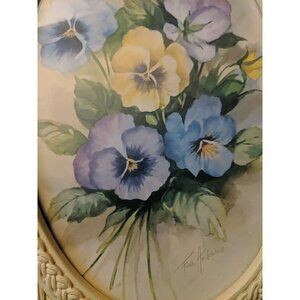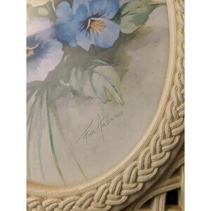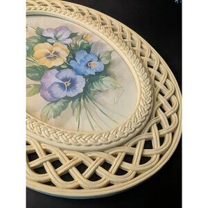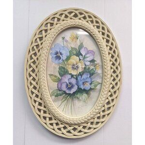Homco Pansy Picture Fran Anderson Cream Oval Lattice Frame Wall Hanging 17"