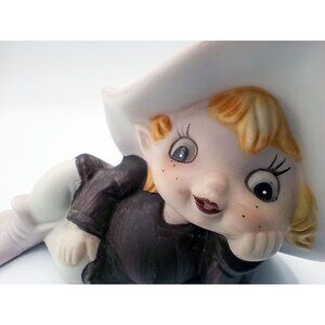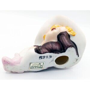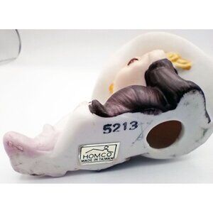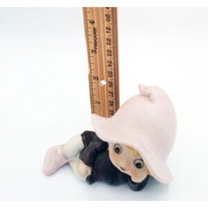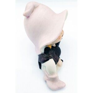 This charming vintage Homco figurine features a delightful pixie elf in a reclining pose. With a pink hat and boots, it adds a whimsical touch to any collection.