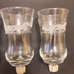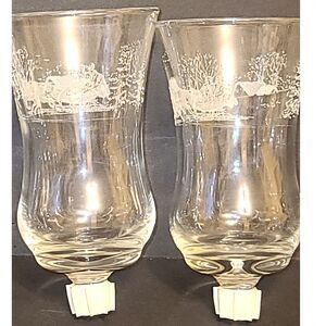 Homco Syroco Winterland Currier & Ives Litho Iced Filigree Glass Candle Holders