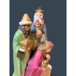 This Homco "Three Wise Men" Porcelain Nativity Figurine (#1473) is a classic collectible. The finely-detailed figurine showcases the biblical scene with superior craftsmanship and elegant design.