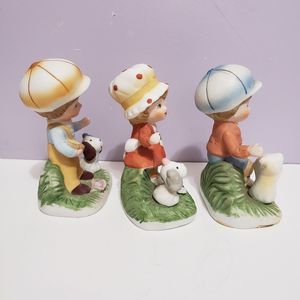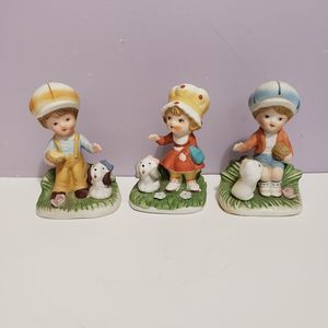 Homco Trio Children / w Pets Bisque Porcelain Figurines
