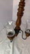 Vintage 1970-1980's Homco Home Interior dark wood and black metal candelabra which includes the 2 Clear Crystal Glass Pattern Shades