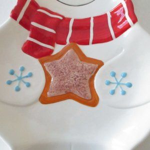 Home Accents Red Scarf Snowman Star Snowflakes Christmas Ceramic Platter Plate