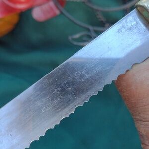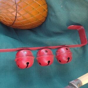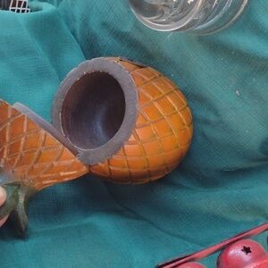 1948 Armstrong Insulator (clear)+7"Hx4"W handcarved wooden pineapple+Royal Sheffield Kitchen Knife &3 Bell red wreath hanger