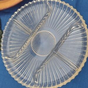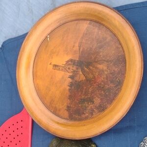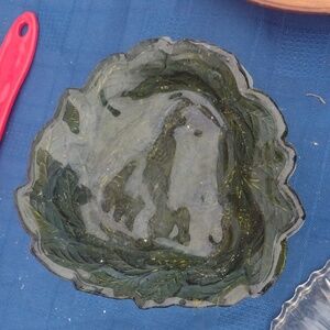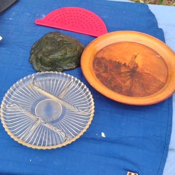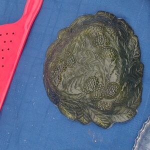 Crystal Dish/green grape pattern bowl/13" handpainted wooden plate from Italy very old/pot strainer