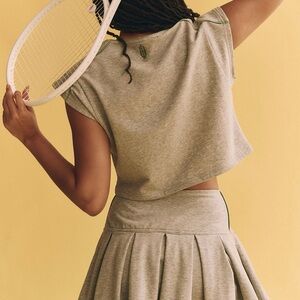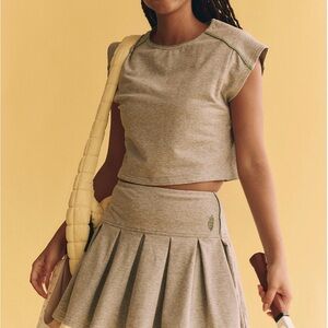 Stylish gray/green sleeveless crop top paired with a pleated skirt. Perfect for casual outings.