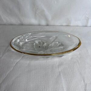 Crystal dish with gold rim. Oval. Pretty orchid design
