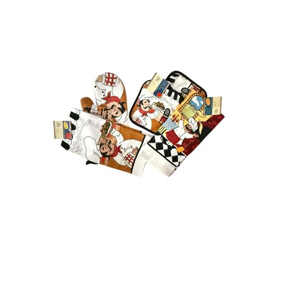Home Collection - Kitchen Linen Set Includes 2 Dish Towel 2 Pot Holders 1 Oven M
