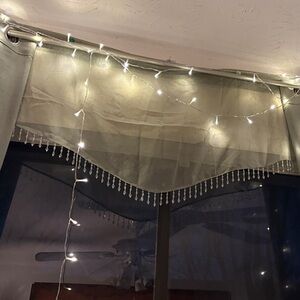 Drape, fluid, and adorned with dangling clear beads, these are truly the favorite part of my own master bedroom.
