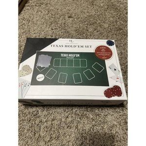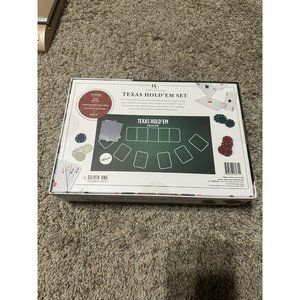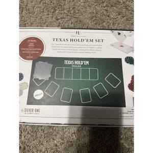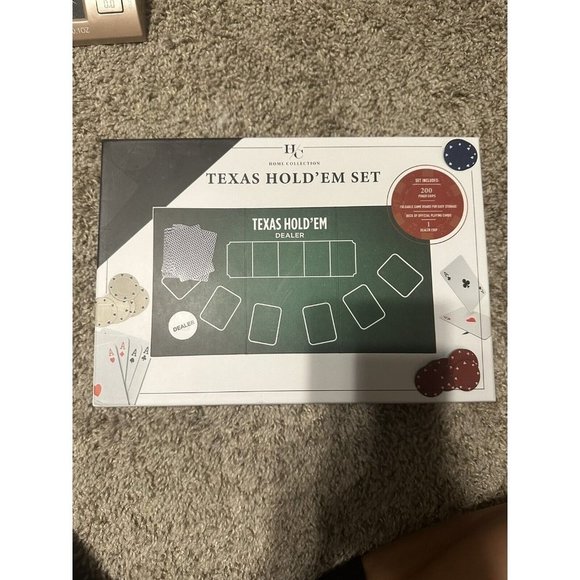 Get ready to host your own poker night with this complete Texas Hold'em game set from Home Collection. The set includes 200 poker chips, a card deck, and a dealer button, perfect for up to 6 players. Whether you're a seasoned player or a beginner, this set is sure to provide hours of fun and entertainment. Plus, the sleek design and high-quality materials make it a great addition to any game room or collection. So, shuffle up and deal with this brand new Texas Hold'em set!