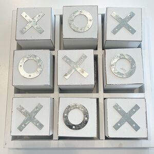 Home Collection Wooden Tic Tac Toe Coffee Table Game Set Silver White Vintage