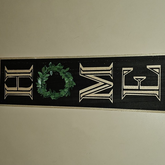 HOME sign with greenery. Has a rope hook to hang on wall.