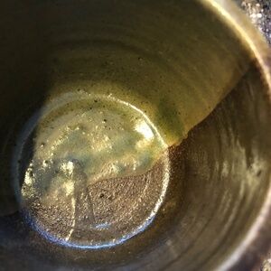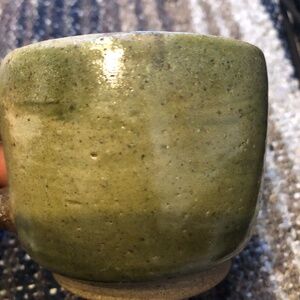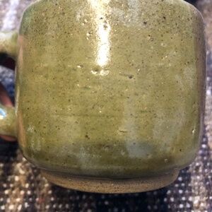 2x green and brown ceramic mugs, cappuccino size. Made in Mexico