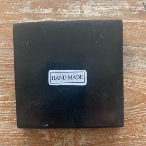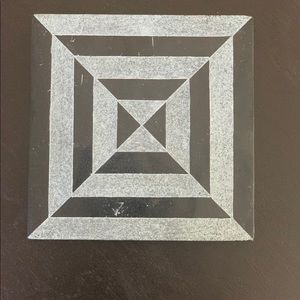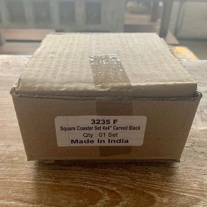Handmade black & white coaster set in slate stone. Made in India. Set of four packed in a box. Comes in many floral & geometric designs.