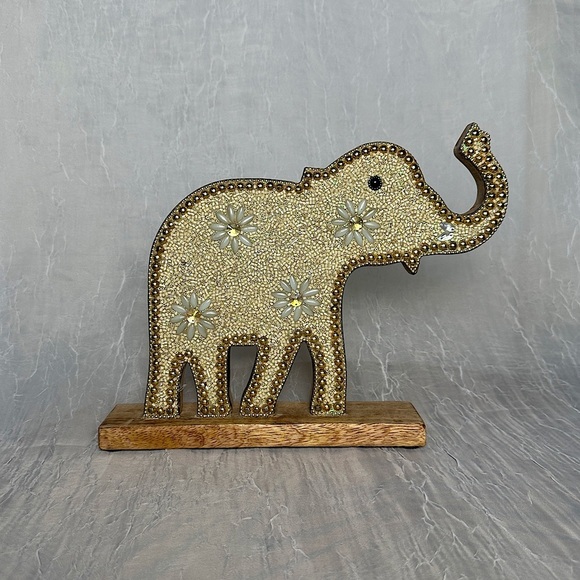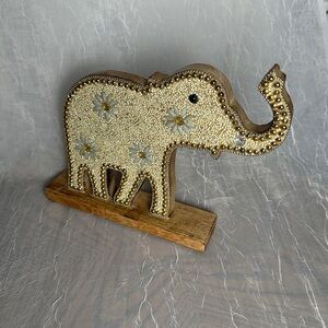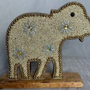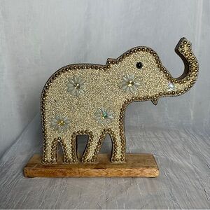 Home Decor Table Top Bead Embellished Wood Figurine Elephant Art Accent