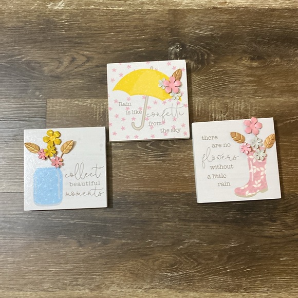 3 different pictures with sayings set on table or can be hung never used excellent condition.