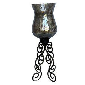 • Wrought Iron Mercury Glass Hurricane Candle Holder