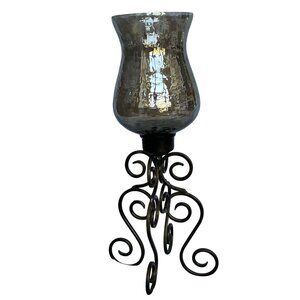 Home Essentials & Beyond Vintage 16" Wrought Iron Base Mercury Glass Hurricane Candle Holder