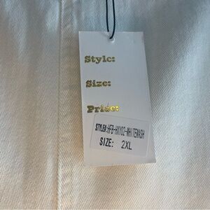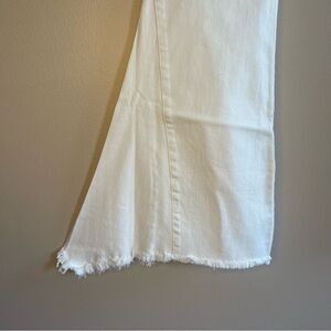 Home Folk white flare jeans, size 2XL, brand new with tags. Super fun and unique retro-inspired wide flare legs with raw frayed hems. High waist with elastic waistband for comfort. Waist 19” flat, rise 13”, length 45”, inseam 32”. Perfect statement pants for festivals, concerts, or any bold fashion look!