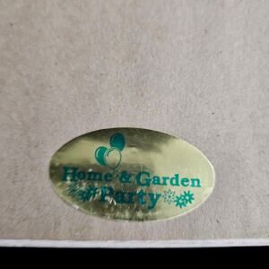 Marked on back with gold foil “Home & Garden Party” label