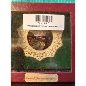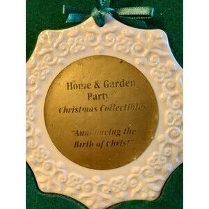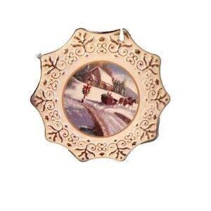 Celebrate the holiday season with this beautiful Christmas ornament set from Home and Garden Party Inc. The set includes three porcelain snowflake-shaped ornaments featuring a festive sleigh ride (x2) and a joyful announcement of the birth of Christ. These vintage ornaments were artist-designed and are perfect for hanging as a decorative addition to your holiday tree or for gifting to a loved one.