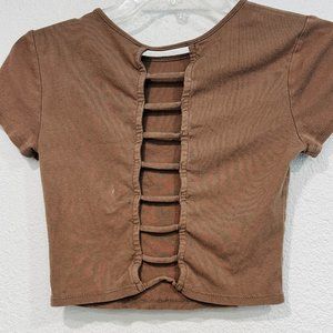 Home Girl Society Crop Top Lattice Back Butterfly CHANGE IS BEAUTIFUL Brown XS