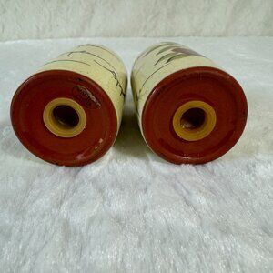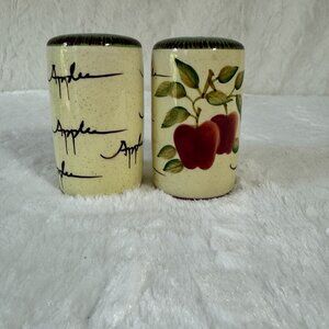 These charming vintage salt and pepper shakers feature a delightful apple motif and hand-painted details that evoke a nostalgic countryside charm.